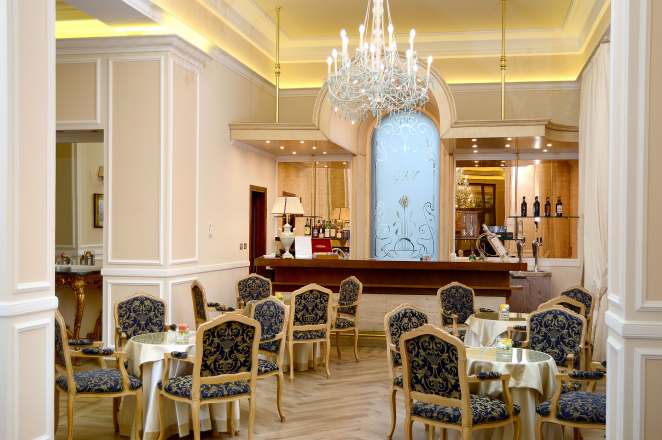 Percorrendo gli splendidi saloni al piano terra del Grand Hotel Vittoria, gli ospiti arrivano al Liberty Bar. Un angolo accogliente per una pausa sorseggiando un cocktail classico o analcolico o gustando un caffè espresso. Il Wi-Fi gratuito consente di connettersi comodamente seduti a un tavolino per svago o per lavoro.