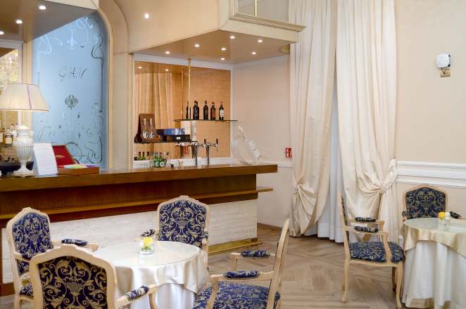 Percorrendo gli splendidi saloni al piano terra del Grand Hotel Vittoria, gli ospiti arrivano al Liberty Bar. Un angolo accogliente per una pausa sorseggiando un cocktail classico o analcolico o gustando un caffè espresso. Il Wi-Fi gratuito consente di connettersi comodamente seduti a un tavolino per svago o per lavoro.